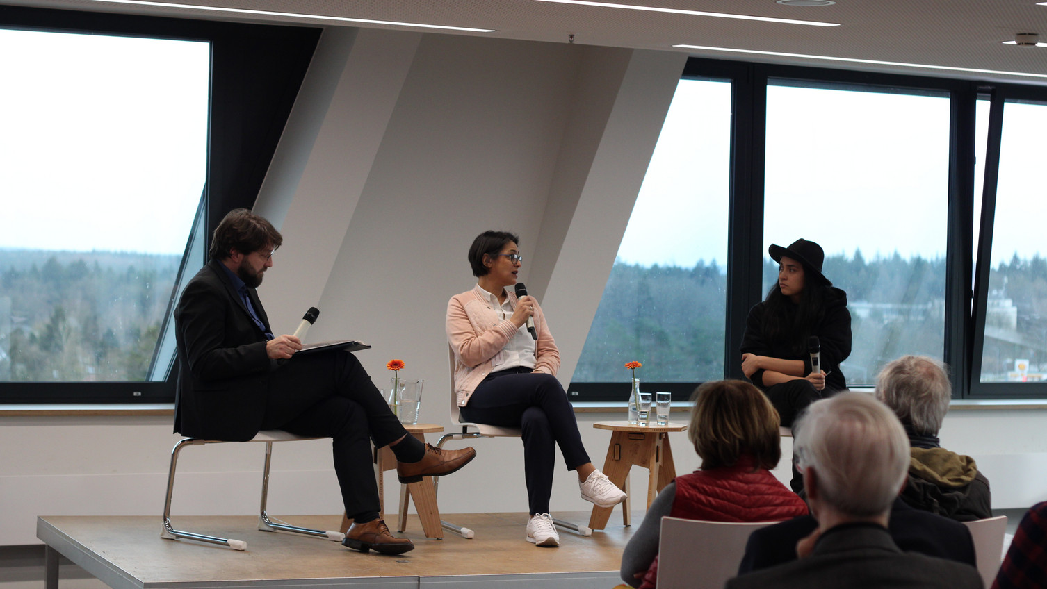 Drei Frauen im Zeichen der Nachhaltigkeit: Lu Yen Roloff von Extinction Rebellion, Bianca Praetorius von Demokratie in Europa und Julia Verlinden von der Grünen Partei diskutieren gesellschaftspolitische Anforderungen des Wandels zu einer nachhaltigen Zukunft.