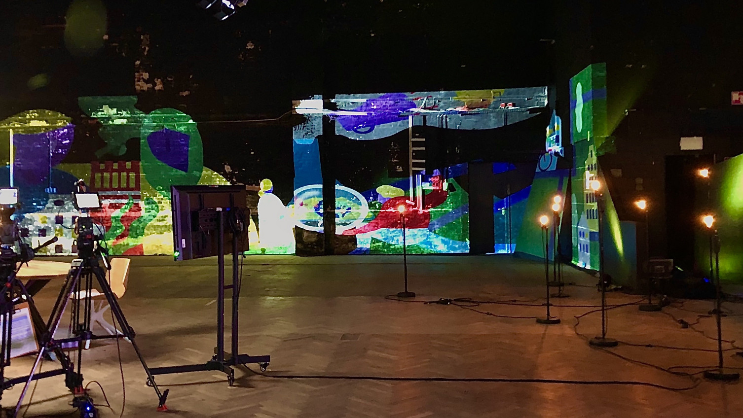 Alle Teammitglieder haben eine eigene Aufgabe. Leon ist für die kreative Direktion verantwortlich. Zusammen mit einer Künstlerin hat er Hintergründe erstellt, die das Team an die Wand hinter dem Geschehen projiziert, „damit es so aussieht, als wäre sie bemalt worden”. Jedes einzelne Hintergrundlicht wurde von Leon perfekt positioniert.