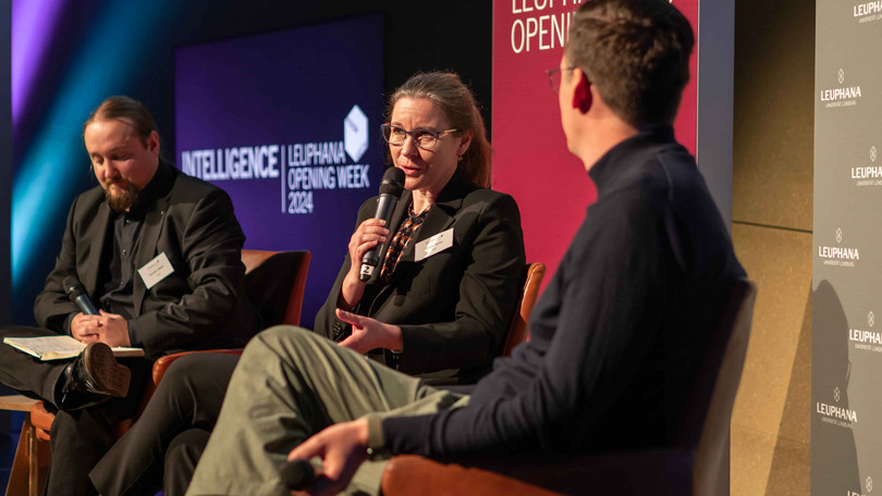 02.10.2024 Das einzigartige Studienmodell der Leuphana sieht vor, dass alle 1400 Erstsemesterstudierenden sich zu ihrem Studienbeginn intensiv mit einem gesellschaftlich relevanten Thema auseinandersetzen. In diesem Jahr sind die Studierenden eingeladen, der Intelligenz auf die Spur zu kommen – als Potenzial des Menschen, die Gesellschaft und seine Umwelten zu verstehen und zu gestalten. Psychologin Marina Weisband und der Neurologe Dr. Nils Schweingruber gaben bei der Eröffnung im Zentralgebäude Impulse.