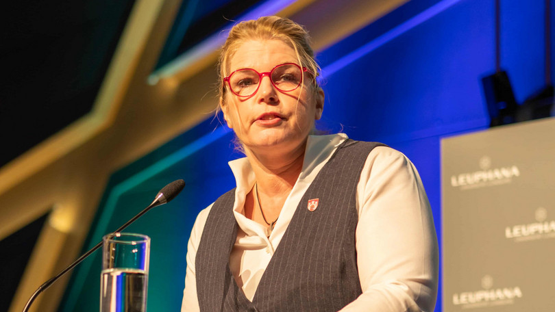 Claudia Kalisch rief zu mehr emotionaler Intelligenz auf: „AI will never replace a conversation“, sagte die Oberbürgermeisterin der Stadt Lüneburg. Sie erinnerte daran, wie prägend die Leuphana für die Stadt Lüneburg ist und ermutigte die Studierenden, sich zu engagieren: „Never let anyone think for you“.