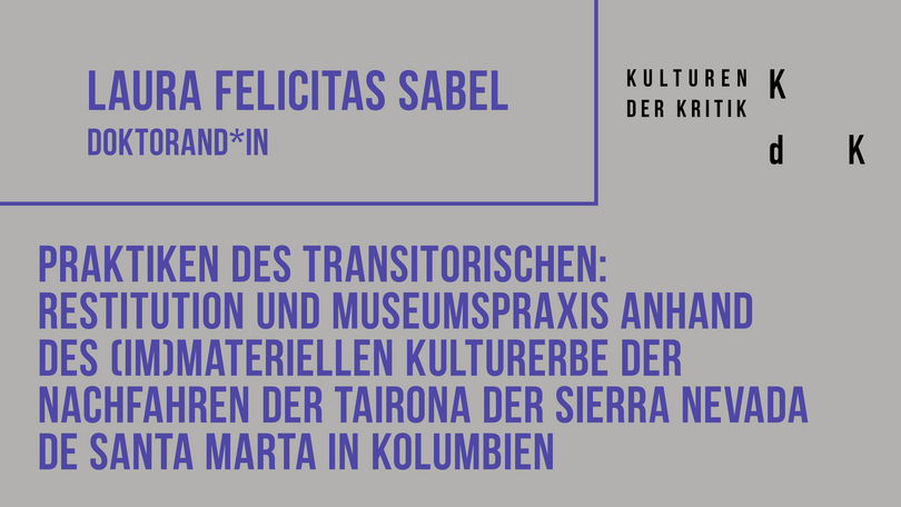 - Laura Felicitas Sabel: Praktiken des Transitorischen: Restitution und Museumspraxis anhand des (im)materiellen Kulturerbe der Nachfahren der Tairona der Sierra Nevada de Santa Marta in Kolumbien