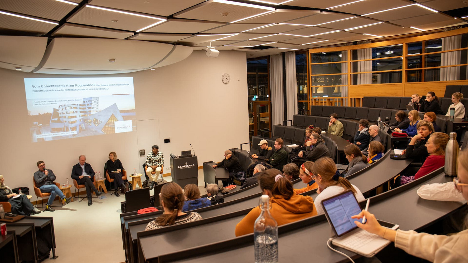 Prof. Dr. Susanne Leeb vom Institut für Philosophie und Kunstwissenschaft (IPK) an der Leuphana Universität Lüneburg richtete durch ihre Fragen das Interesse von der aktuell häufig debattierten Restitution aller kolonialen Gegenstände zu der darunter liegenden, größeren Thematik von Wissenstransfer und gleichberechtigtem Austausch von Wissen mit den Herkunftsgesellschaften. Hier stünden wir noch ganz am Anfang.