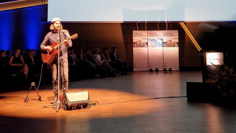 Unterbrochen nur von Hannes Koch. Der Lüneburger Sänger und Songtexter lockerte die Veranstaltung zwischendurch immer wieder mit Beiträgen auf. So mancher Zuschauende staunte unterdessen nicht schlecht über die Vielfalt der Forschungsfragen, die sich die Graduierten für ihre Abschlussarbeiten gestellt hatten. Die meisten jedoch immer unter der Überschrift der Nachhaltigkeit und mit Hinblick auf einen Wandel der Arbeitswelt.