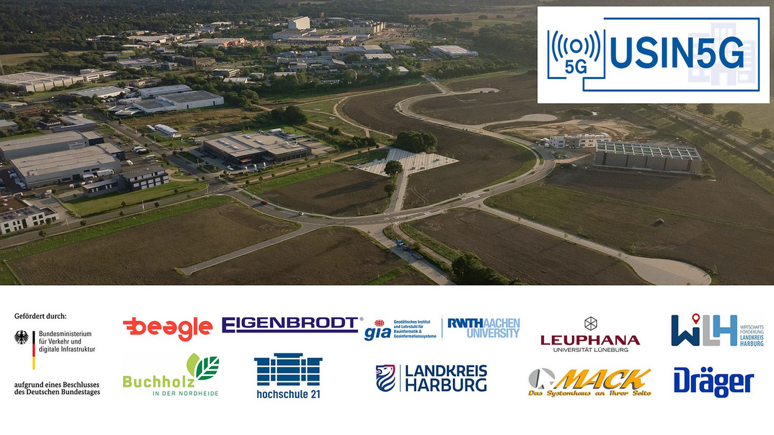 On the site of the Technology and Innovation Park Nordheide (TIP) in the district of Harburg, multiple project partners create a unique ecosystem for the development of innovative products and services based on a 5G campus network. USIN5G is a lighthouse project for leveraging 5G technology in a commercial area. The USIN5G project comprises three sub-projects dedicated to the application fields "5G Smart Service Platform for Commercial Areas", "Smart Production and Buildings" and in "Smart Disaster Response".