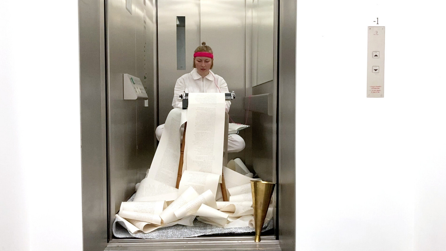 For her master's thesis, Waldforst investigated the concept of collaboration in the field of artistic action and analysed the film project 'Als Kunstwerk ABGELEHNT' (2021) with regard to collaborative structures. This short film thematises a factory-like work: a chain of rotating, endless productions. The 13 students, including Waldforst, practice a different course of action and developed it in the 3rd master's semester of the project volume "Aesthetic Operations #Dense Descriptions" with Prof. Dr. Pierangelo Maset at Leuphana University Lüneburg. "Due to the reduction of the project band in the last winter semester 2021/22, such larger projects will unfortunately no longer be possible," says Waldforst.