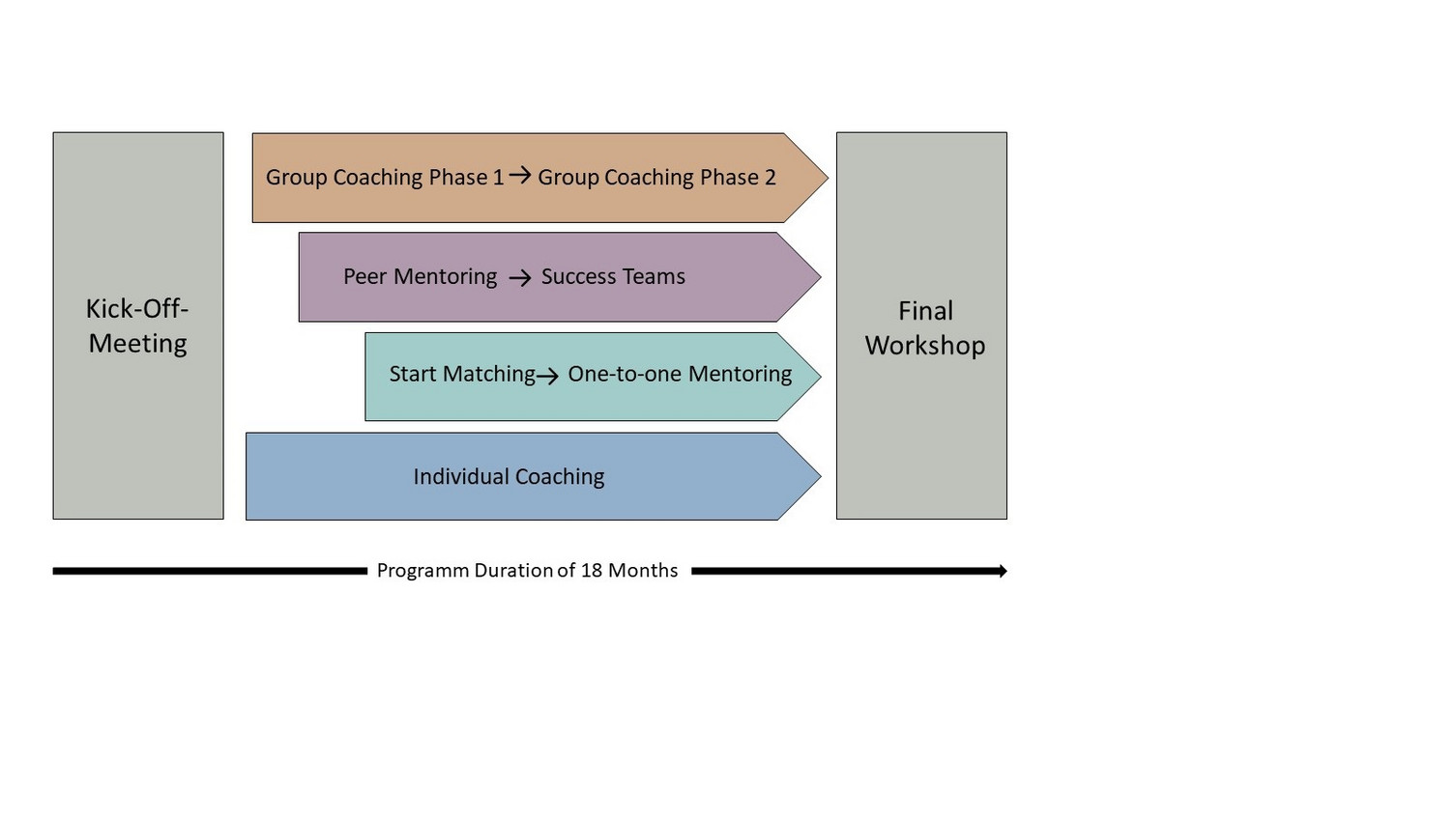 The schedule for the binding group-coaching sessions can be found under events and dates. A contribution towards expenses of 20 Euros is required for participation in the entire programme.