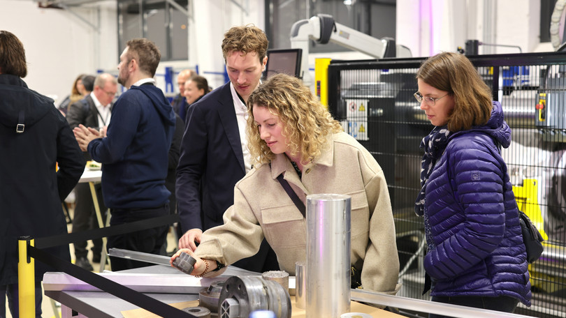 Nach den vielseitigen Vorträgen ging es am späten Nachmittag gemeinsam in die Maschinenhalle der Leuphana. Dort nutzten die Teilnehmenden die Möglichkeit, die Strangpressen, die Drahtzugmaschine und die Maschine für Laserauftragsschweißen näher zu besichtigen und bei Häppchen und Getränken neue Kontakte zu knüpfen sowie alte zu intensivieren.