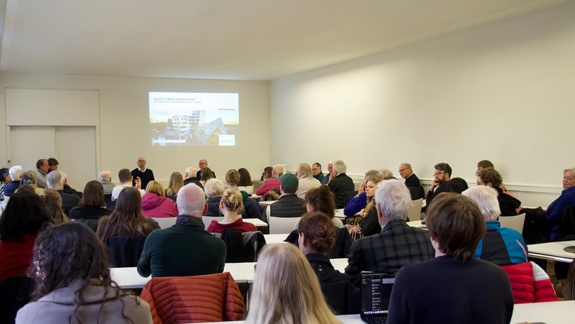 Im einleitenden Vortrag skizzierte Kück die zentrale These: Die westliche Demokratie, wie sie viele Jahrzehnte stabil und scheinbar alternativlos erschien, sei durch globale Krisen vielfach erschüttert worden. Geopolitische Abhängigkeiten von günstigen Rohstoffen und sicherheitspolitische Garantien hätten eine trügerische Stabilität erzeugt. „Die Kombination aus billiger Wärme durch russisches Gas, in China billig produzierten Waren und einer durch die USA billig garantierten Sicherheit ist Geschichte. Aus und vorbei“, pointierte Kück. Michael Koß griff diesen Gedanken auf und betonte in seiner These die Notwendigkeit, die aktuellen Herausforderungen nicht nur als Krise zu verstehen: „Die Demokratie ist von Natur aus umkämpft. Ihre Stabilität in den letzten Jahrzehnten war eher die Ausnahme. Jetzt erleben wir die Rückkehr zur Normalität.“