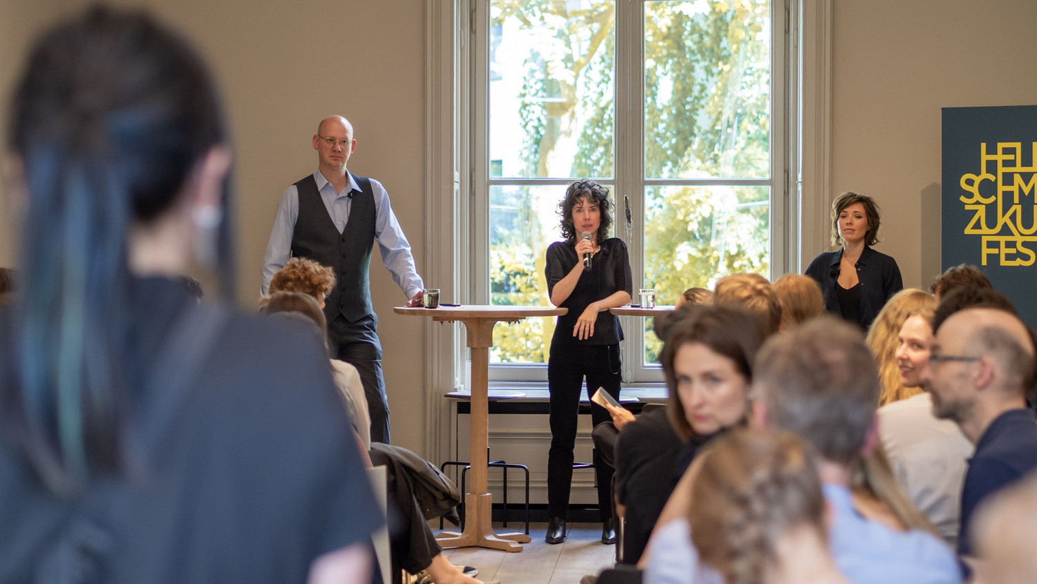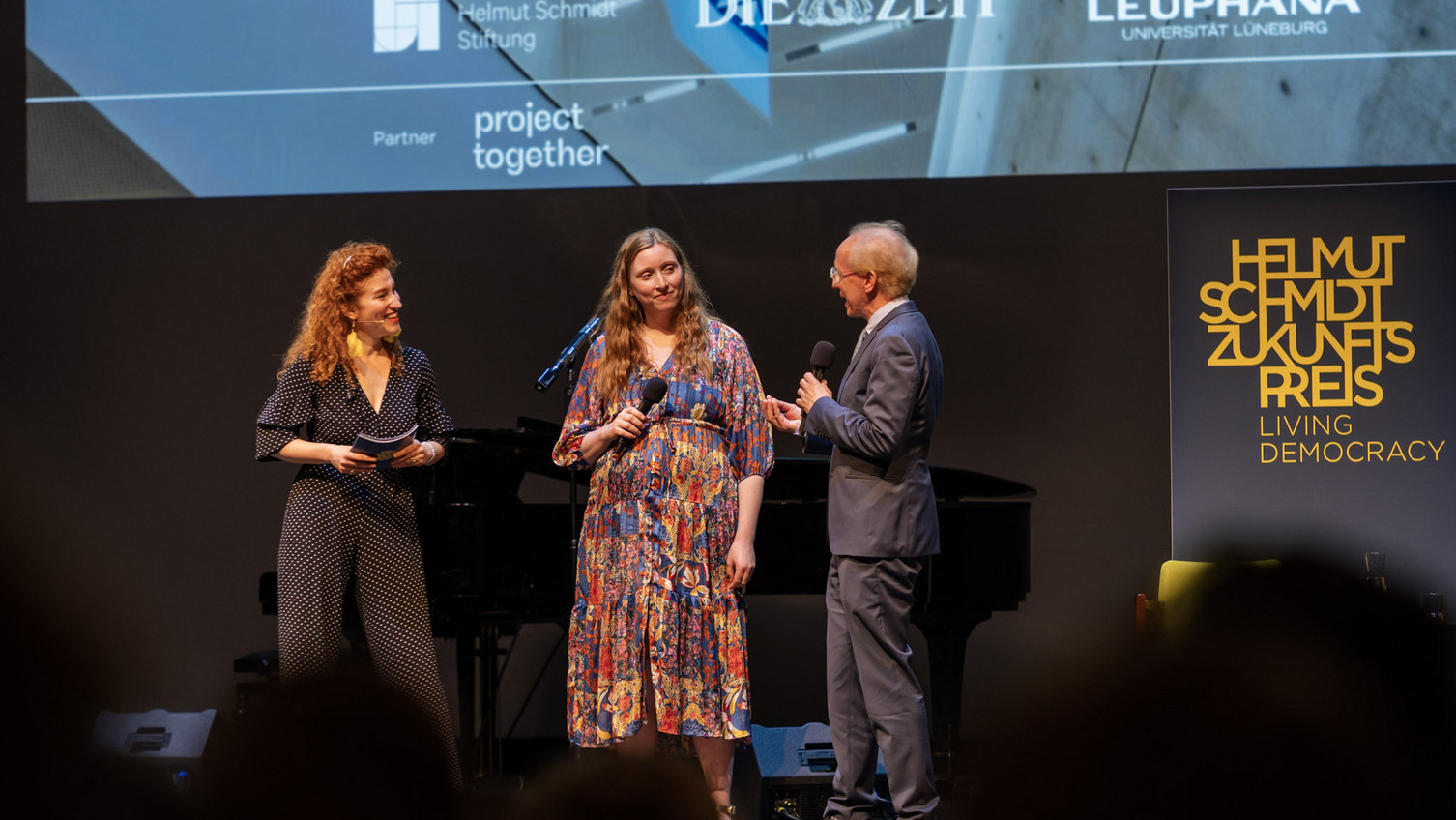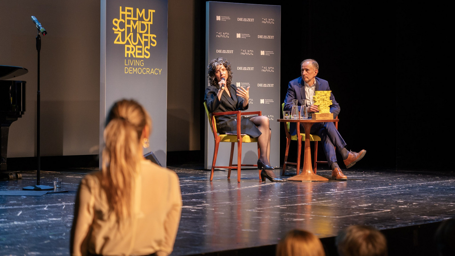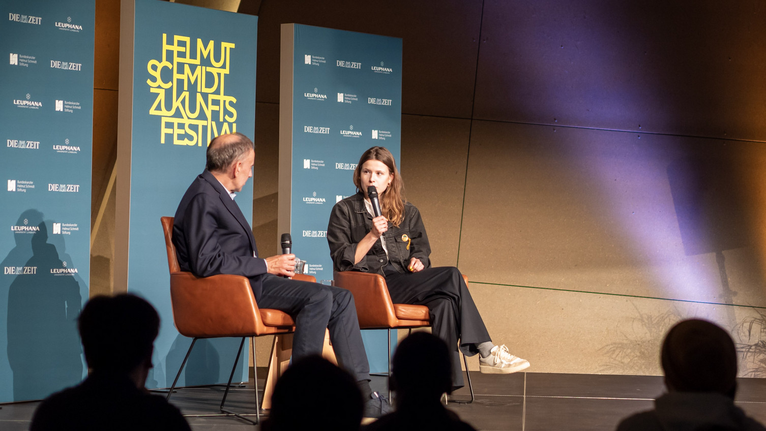 An solchen Projekten wird dann konkret gearbeitet, und nicht nur das: Die Ergebnisse präsentiert das Zukunftsfestival nach zweieinhalb Tagen auf der großen Bühne des Helmut-Schmidt-Zukunftspreises vor Hunderten Entscheidungsträgern im Thalia Theater in Hamburg. Der Preis selbst geht dieses Jahr an Meredith Whittaker. Die Präsidentin der gemeinnützigen Signal Foundation erhält den Preis für ihren Einsatz zugunsten einer humanen und gemeinwohlorientierten Entwicklung künstlicher Intelligenz.