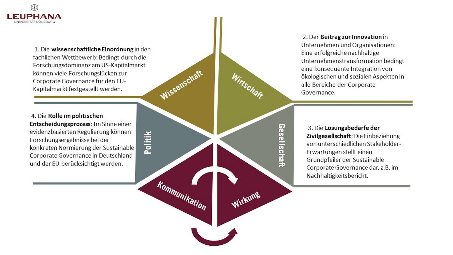 Der Vorstand in einer Aktiengesellschaft muss „unter eigener Verantwortung“ das Unternehmen leiten. Das „Unternehmensinteresse“ kann unterschiedlich ausgelegt werden. In den 1980er und 1990er Jahren war der Shareholder Value-Ansatz bei börsennotierten Unternehmen sehr beliebt. Spätestens seit der Finanzkrise 2007/08 wird alternativ ein Stakeholder Value-Ansatz propagiert, der einen angemessenen Ausgleich zwischen Shareholdern (Investor*innen) und anderen Stakeholder-Gruppen des Unternehmens (etwa Kund*innen, Lieferanten) beinhaltet. Ed Freeman, der die Stakeholder Theorie ins Leben gerufen hat, ist seit vielen Jahren Ehrendoktor der Leuphana. Auch wird ein „Sustainable Corporate Purpose“ im Sinne einer Gemeinwohlorientierung (Public Value) vorgeschlagen. Nach der bereits erwähnten Neufassung des Kodex sollen börsennotierte Aktiengesellschaften künftig Nachhaltigkeitsziele im Sinne der Stakeholder angemessen berücksichtigen. Das betrifft die Einbeziehungin die Unternehmensstrategie, -planung und in der operativen Umsetzung. Nach dem ebenfalls bereits erwähnten aktuellen EU-Richtlinienentwurf zu den nachhaltigkeitsbezogenen Sorgfaltspflichten soll sich das Geschäftsmodell und die -strategie bestimmter Unternehmen künftig an den Klimaschutzzielen der Pariser Verträge orientieren.