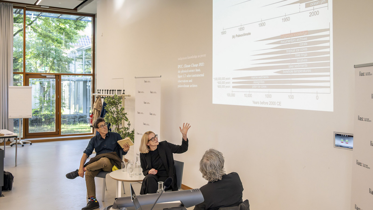 Dies unterstrich Schaffer noch einmal in der Diskussion, als Christina Wessely fragte, wie das indigene Wissen im Vergleich zu den anderen Erkenntnissen auf epistemologischer Ebene abschneidet. Hier drücke sich, so Schaffer, die anhaltende koloniale Denkweise aus, denn es gäbe aus seiner Sicht keinen Unterschied. Im Gegenteil benötige die Menschheit das Wissen, und die Praktiken der Einheimischen, um mit dem Klimawandel nachhaltig umzugehen. Allerdings zählte Schaffer auch die Kenntnisse der heutigen einheimischen Bevölkerung dazu, etwa das Wissen eines italienischen Winzers, womit nicht alle Anwesenden einverstanden waren.