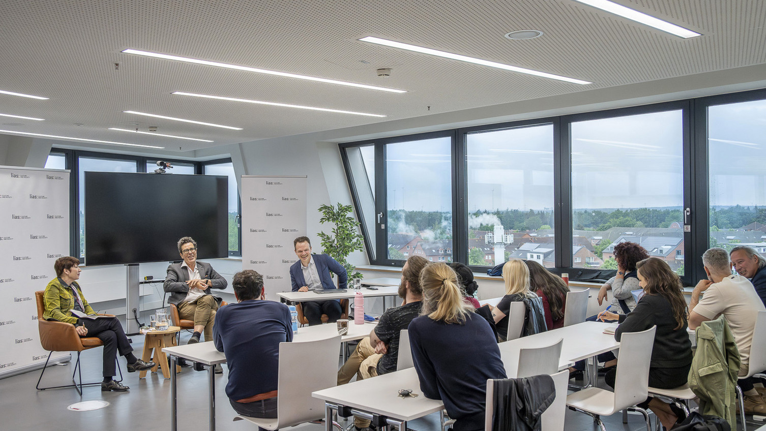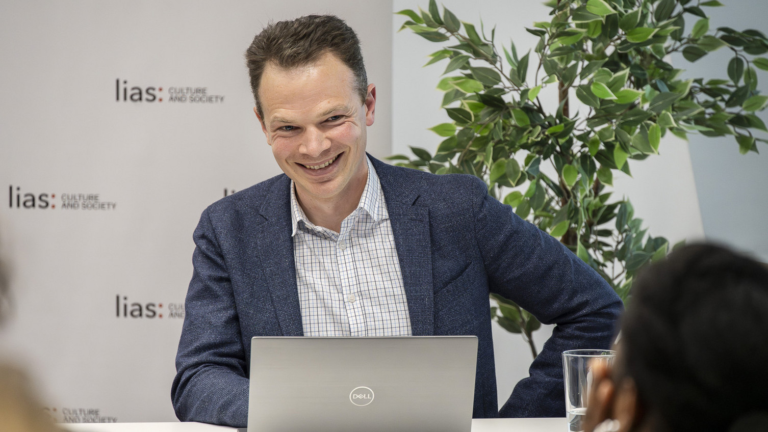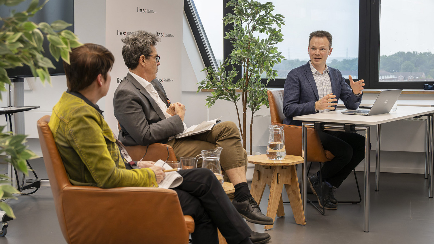 07.06.2024 In einer Podiumsdiskussion am LIAS stellte sich der Philosoph Gildas Salmon mit seinen Forschungen zum Wissenstransfer aus Kolonialindien durch die Briten bei der Entstehung der modernen vergleichenden Sozialwissenschaften den kritischen Fragen von LIAS Senior Fellows Rosalind Morris und Richard Drayton